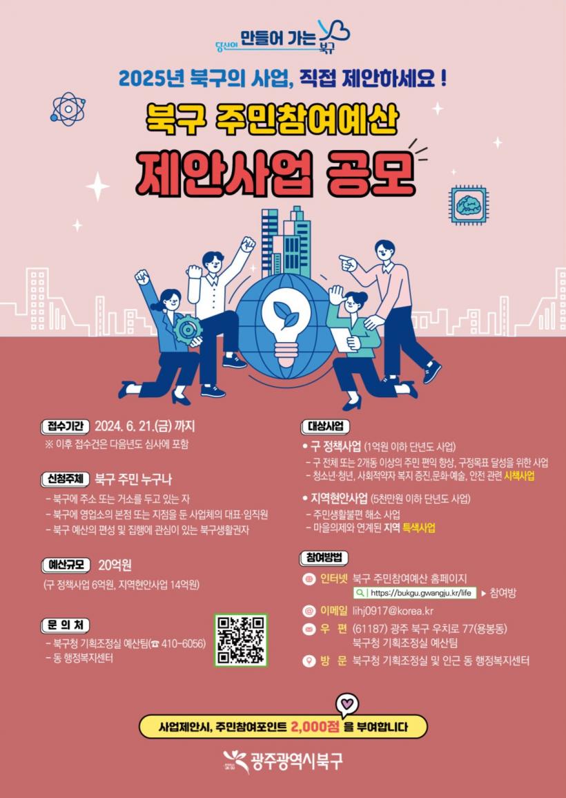 [°ø°£´º½º = ±è´ë¿µ±âÀÚ ] ±¤Áֽà ºÏ±¸(±¸Ã»Àå ¹®ÀÎ)°¡ ÁÖ¹ÎÀÌ Ã¼°¨ÇÏ´Â ÆíÀÍ »ç¾÷À» ¹ß±¼ÇØ ³»³âµµ ¿¹»ê¿¡ ¹Ý¿µÇϰíÀÚ 6¿ù 21ÀϱîÁö ¡®ÁÖ¹ÎÂü¿©¿¹»êÁ¦ ÁֹΠÁ¦¾È»ç¾÷ °ø¸ð¡¯¸¦ ½Ç½ÃÇÑ´Ù°í 3ÀÏ ¹àÇû´Ù.
