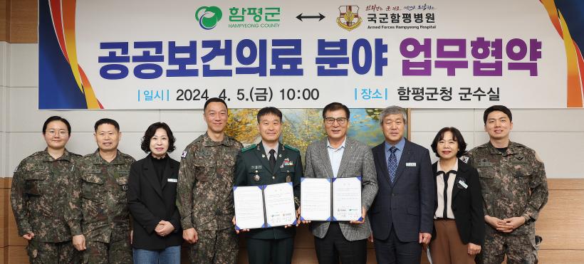 ÇÔÆò±ºÃ» ±º¼ö½Ç¿¡¼ ¿¸° À̹ø MOU´Â ÀÌ»óÀÍ ÇÔÆò±º¼ö¿Í ¼Á¤±â ±¹±ºÇÔÆòº´¿øÀå µîÀÌ Âü¼®ÇÑ °¡¿îµ¥ Áö¿ªÁֹΠ´ë»ó ±º º´¿ø ÀǷἺñ½º¸¦ Á¦°øÇÏ°í °ø°øº¸°ÇÀÇ·á Á¤Ã¥ ÃßÁø µî »óÈ£ Çù·Â°ú ¹ßÀüÀ» µµ¸ðÇϱâ À§ÇØ ¸¶·ÃµÆ´Ù.
