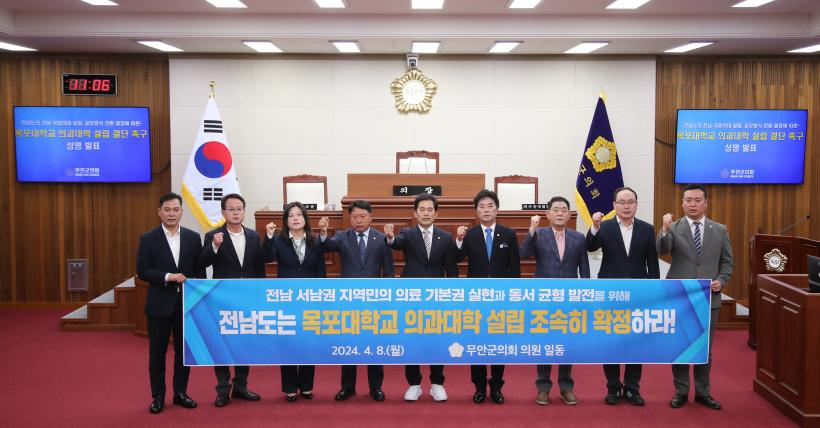 [°ø°£´º½º = Àå¿ÁÁø±âÀÚ] ¹«¾È±ºÀÇȸ(ÀÇÀå ±è°æÇö)´Â 8ÀÏ ¼º¸íÀ» ³»°í Àü³²±Ç ÀÇ´ë À¯Ä¡ ¹®Á¦¿Í °ü·ÃÇØ ¡®¸ñÆ÷´ëÇб³ Àǰú´ëÇÐ ¼³¸³ ¹æ¾È¡¯À» Á¶¼ÓÈ÷ È®Á¤ÇÒ °ÍÀ» Ã˱¸Çß´Ù.