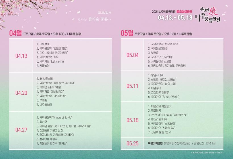 [°ø°£´º½º = Àå¿ÁÁø±âÀÚ ] Àü¶ó³²µµ ³ªÁÖ½Ã(½ÃÀå À±º´ÅÂ)´Â ³ªÁֽø³±¹¾Ç´ÜÀÇ Åä¿ä»ó¼³°ø¿¬ ¡®Ãµ³âÀÇ äÅ ³ªÁÖdz·ù¿Àü¡¯ÀÌ ¿À´Â 13ÀÏ Ã¹ °ø¿¬À» ½ÃÀÛÇÑ´Ù°í 11ÀÏ ¹àÇû´Ù.