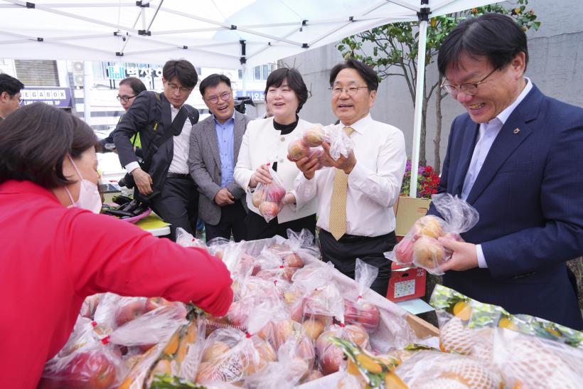 °±âÁ¤ ±¤ÁÖ½ÃÀåÀº ¡°¹°°¡ »ó½ÂÀ¸·Î Èûµç ½Ã¹Îµé¿¡°Ô ±Ý¿äÁ÷°Å·¡ÀåÅͰ¡ Á¶±ÝÀ̳ª¸¶ ÈûÀÌ µÇ±æ ¹Ù¶õ´Ù¡±¸ç ¡°¿ì¸® Áö¿ª¿¡¼ »ý»êÇÑ ½Å¼±ÇÑ ³óÃà»ê¹°À» Àú·ÅÇÑ °¡°Ý¿¡ ±¸¸ÅÇÒ ¼ö ÀÖ´Â ±Ý¿äÁ÷°Å·¡ÀåÅÍ¿¡ ¸¹Àº °ü½É°ú Âü¿© ºÎʵ台´Ù¡±°í ¹àÇû´Ù.