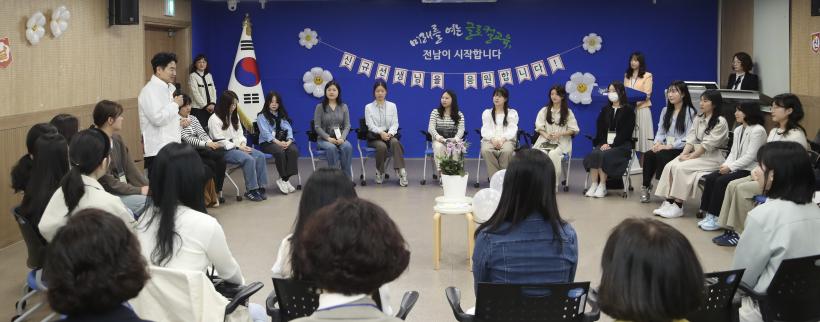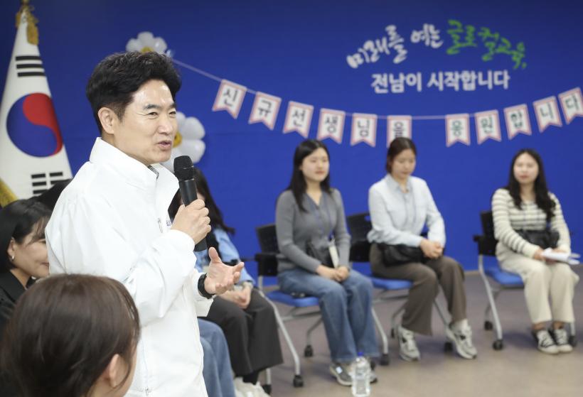 [°ø°£´º½º = ±è¼ö±Ù±âÀÚ] Àü¶ó³²µµ±³À°Ã»(±³À°°¨ ±è´ëÁß)Àº Áö³ 12ÀÏ Ã»»ç ÁßȸÀǽǿ¡¼ ¡®½Å±Ô±³»ç ½Å³ª´Â ³¯¡¯À» ¿î¿µÇϰí, À¯Ä¡¿ø ±³»ç·Î¼ ù°ÉÀ½À» ¶¼´Â ½Å±Ô±³»çµé°ú ¼ÒÅëÀÇ ÀÚ¸®¸¦ ¸¶·ÃÇß´Ù.
