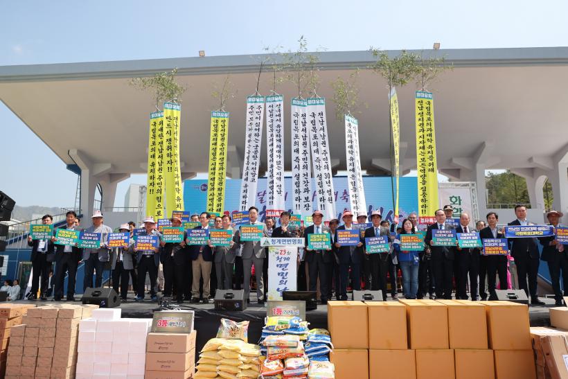 Çà»ç´Â ±è»ê ±º¼ö¿Í ¼»ï¼® ±¹È¸ÀÇ¿øÀ» ºñ·ÔÇÑ ±â°ü»çȸ´ÜüÀå, ÁÖ¹Î, Àç°æÇâ¿ì µî 1,500¸íÀÌ Âü¼®ÇßÀ¸¸ç û°è¸é¹ø¿µÈ¸(ȸÀå ±è»óö)°¡ ÁÖÃÖÇϰí û°è¸é ±â°ü»çȸ´Üü°¡ ÈÄ¿øÇÏ¿´´Ù.