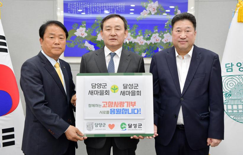 [°ø°£´º½º = ±è¼ö±Ù±âÀÚ ] ´ã¾ç±º»õ¸¶À»È¸(ȸÀå ±èÁ¾¼ö)¿Í ´Þ¼º±º»õ¸¶À»È¸(ȸÀå Á¤¿¬¿í)ÀÌ Áö³ 12ÀÏ ´ã¾ç±ºÃ»¿¡¼ °íÇâ»ç¶û±âºÎ±Ý »óÈ£ ±âʽÄÀ» °³ÃÖÇß´Ù.