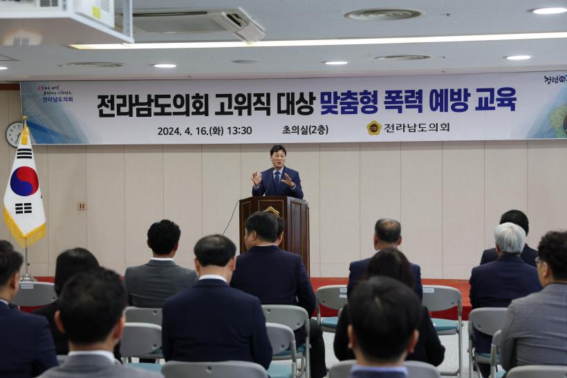 [°ø°£´º½º = ±è¼ö±Ù±âÀÚ] Àü¶ó³²µµÀÇȸ(¼µ¿¿í ÀÇÀå ¡¤ ¼øÃµ4)´Â 4¿ù 16ÀÏ ÀÇ¿ø°ú °£ºÎ°ø¹«¿øÀ» ´ë»óÀ¸·Î µµÀÇȸ ÃÊÀǽǿ¡¼ °íÀ§Á÷ ¸ÂÃãÇü 4´ë Æø·Â ¿¹¹æ±³À°À» ½Ç½ÃÇß´Ù.