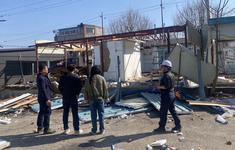 ÇÑÆí, ³ªÁֽô ÇöÀå ÀÛ¾÷±Ù·ÎÀÚ ¾ÈÀü¸ð ¹ÌÂø¿ë ¹× °ø»ç ¾È³»°£ÆÇ ¹Ì¼³Ä¡ ºÎºÐÀ» ½ÃÁ¤ Á¶Ä¡Çϰí ÇöÀå¿¡ ¹æÄ¡µÈ ÀÜÅ並 ¹ÝÃâÇÏ´Â µî º¸´Ù ¾ÈÀüÇϰí ÄèÀûÇÑ °ø»ç ȯ°æÀ» Á¶¼ºÇϰí ÀÖ´Ù.