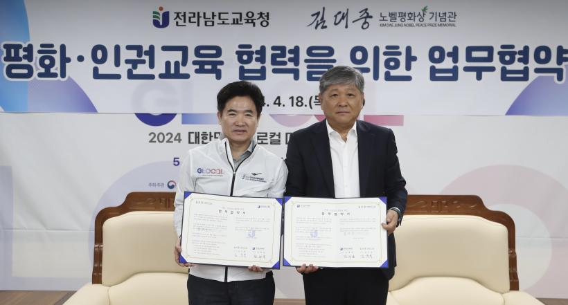 [°ø°£´º½º = ±è¼ö±Ù±âÀÚ] Àü¶ó³²µµ±³À°Ã»(±è´ëÁß±³À°°¨)°ú ±è´ëÁ߳뺧ÆòÈ»ó±â³ä°ü(°üÀå ±èµÎº¹)Àº 4¿ù 18ÀÏ Àü³²±³À°Ã»¿¡¼ ¹Ì·¡¼¼´ë ÆòÈ¡¤ÀαDZ³À°À» À§ÇÑ ¾÷¹«Çù¾àÀ» ¸Î¾ú´Ù.