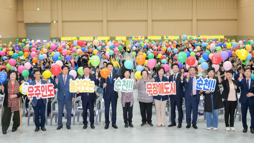 [°ø°£´º½º = ±è¿ëÁø±âÀÚ] ¼øÃµ½Ã(³ë°ü±Ô ½ÃÀå)´Â Áö³ 19ÀÏ ¼øÃµ¸¸»ýŹ®È±³À°¿ø ´Ù¸ñÀûȦ¿¡¼ Á¦44ȸ Àå¾ÖÀÎÀÇ ³¯ ±â³ä½ÄÀ» °³ÃÖÇßÀ¸¸ç, ÀÌ¾î ¼øÃµ¸¸±¹°¡Á¤¿øÀ» ޹æÇß´Ù°í ¹àÇû´Ù