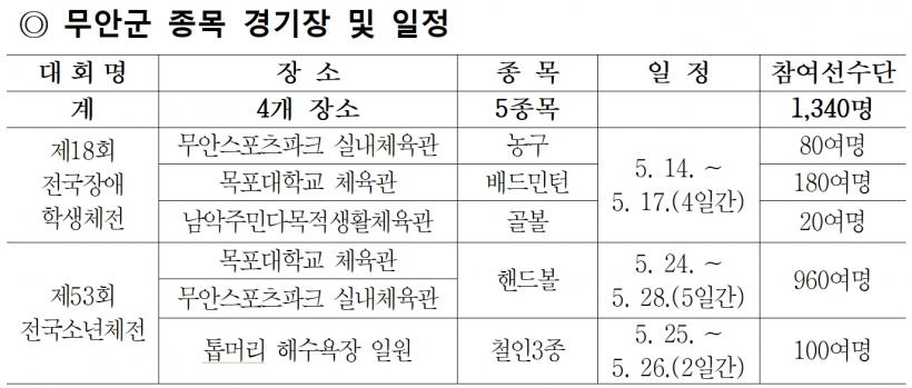 ¹«¾È±º¿¡¼´Â Çڵ庼, öÀÎ3Á¾°æ±â, ³ó±¸, ¹èµå¹ÎÅÏ, °ñº¼ 5°³ Á¾¸ñ¿¡ ÀÓ¿ø, ¼±¼ö´Ü µî 1,400¿© ¸íÀÌ Âü¿©ÇÏ¸ç ¹«¾È½ºÆ÷Ã÷ÆÄÅ© ½Ç³»Ã¼À°°ü µî 4°³ °æ±âÀå¿¡¼ ¿¸°´Ù.