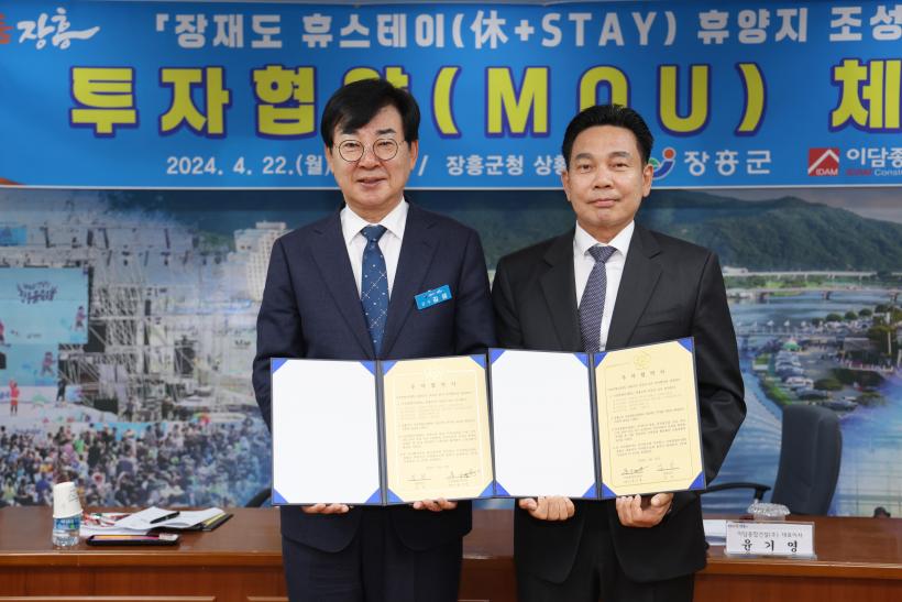 [°ø°£´º½º = ±è¼ö±Ù±âÀÚ] ÀåÈﱺÀº 22ÀÏ ÀÌ´ãÁ¾ÇհǼ³(ÁÖ)°ú ÇÔ²² ÀåÀçµµ ÈÞ½ºÅ×ÀÌ ÈÞ¾çÁö Á¶¼º»ç¾÷À» À§ÇÑ ÅõÀÚÇù¾à(MOU)À» ü°áÇß´Ù.