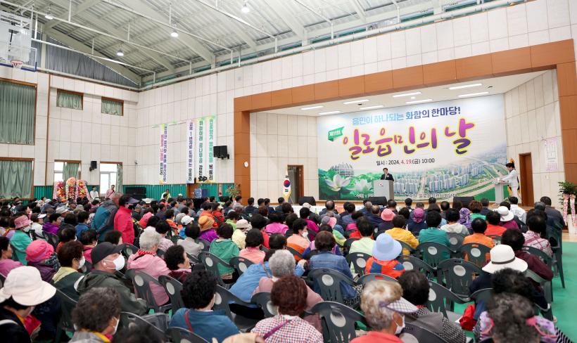 ÀÏ·ÎÀ¾ ¹ø¿µÈ¸(ȸÀå ±è¿ë¿Ï) ÁÖ°üÀ¸·Î Ä¡·¯Áø À̹ø Çà»ç¿¡´Â ±è»ê ±º¼ö, ¼»ï¼® ±¹È¸ÀÇ¿ø, ±è°æÇö ¹«¾È±ºÀÇȸ ÀÇÀåÀ» ºñ·ÔÇÑ ÁÖ¹Î, Àç°æÇâ¿ì µî 1,200¿© ¸íÀÌ Âü¼®ÇÏ¿© ÀÏ·ÎÀ¾ ¹ßÀü°ú ÈÇÕÀ» ±â¿øÇß´Ù.