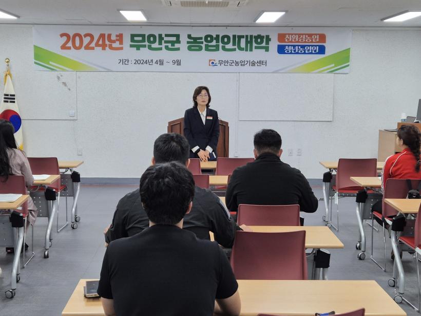 [°ø°£´º½º = Àå¿ÁÁø±âÀÚ] Àü³² ¹«¾È±º(±º¼ö ±è»ê)Àº Áö³ 23ÀÏ ¹«¾È±º³ó¾÷±â¼ú¼¾ÅÍ¿¡¼ 2024³â ¹«¾È³ó¾÷ÀδëÇРû³â³ó¾÷ÀΰúÁ¤ ±³À° °³°½ÄÀ» °³ÃÖÇß´Ù.