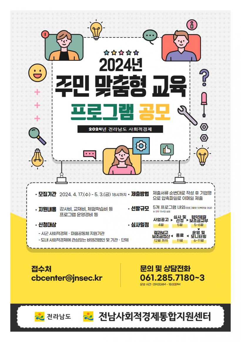 [°ø°£´º½º = ±è¼ö±Ù±âÀÚ] Àü¶ó³²µµ°¡ ¿À´Â 5¿ù 3ÀϱîÁö »çȸÀû°æÁ¦ ÀÎ½Ä È®´ë¸¦ À§ÇÑ ¡®2024³â »çȸÀû°æÁ¦ ÁֹΠ¸ÂÃãÇü ±³À°¡¯ÀÇ ¿î¿µ ±â°üÀ» ¸ðÁýÇÑ´Ù.