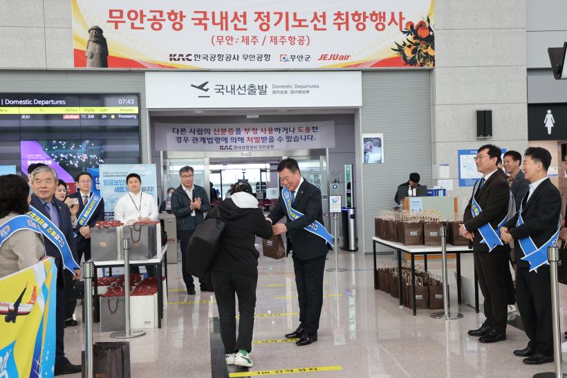 [°ø°£´º½º = Àå¿ÁÁø±âÀÚ] Àü³² ¹«¾È±º(±º¼ö ±è»ê)ÀÌ Á¦ÁÖÇ×°øÀÇ ¹«¾È-Á¦ÁÖ °£ Á¤±â³ë¼± ÃëÇ×À» ±â³äÇϱâ À§ÇØ 26ÀÏ ¹«¾È±¹Á¦°øÇ× 2Ãþ ±¹³»¼± Ãâ¹ßÀå¿¡¼ Á¦ÁÖÇ×°ø, Çѱ¹°øÇ×°ø»ç ¹«¾ÈÁö»ç¿Í ÇÔ²² ±â³ä À̺¥Æ®¸¦ °³ÃÖÇÏ¿´´Ù.