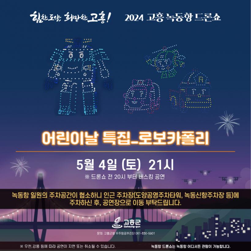 [°ø°£´º½º = ±è¿ëÁø±âÀÚ] °íÈﱺ(±º¼ö °ø¿µ¹Î)ÀÌ ¿À´Â 5¿ù 4ÀÏ(Åä) Àú³á 9½Ã ³ìµ¿Ç× µå·Ð¼î »ó¼³ °ø¿¬¿¡ ¾î¸°À̳¯À» ±â³äÇÑ ¾ÆÀÌ¿Í °¡Á·µé ¸ðµÎ°¡ ÇÔ²²ÇÏ´Â »ö´Ù¸¥ Àç¹Ì¿Í Ãß¾ïÀ» ¸¸µé ¼ö ÀÖ´Â ÄÜÅÙÃ÷ ÁÖÁ¦ °ø¿¬À» ºñ·ÔÇØ Ưº°ÇÑ º¼°Å¸®¸¦ ¼±¹°·Î ÁغñÁß¿¡ ÀÖ¾î ±â´ë¸¦ ¸ðÀ¸°í ÀÖ´Ù.