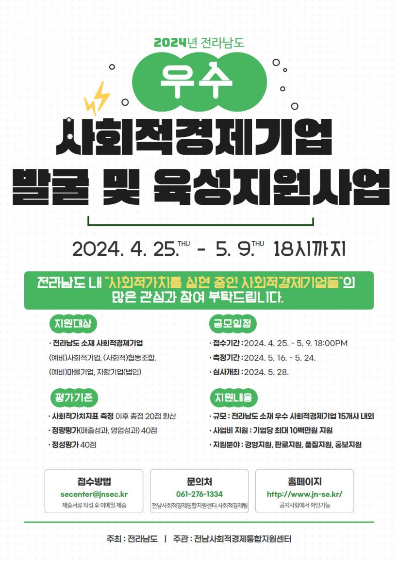 Àü³²µµ ´©¸®Áý¿¡¼ ½Åû¼¸¦ ³»·Á¹Þ¾Æ Àü³²»çȸÀû°æÁ¦ÅëÇÕÁö¿ø¼¾ÅÍ¿¡ À̸ÞÀÏ(secenter@jnsec.kr)·Î Á¦ÃâÇÏ¸é µÈ´Ù. ¼±Á¤ °á°ú´Â ¼·ù ¹× ´ë¸é½É»ç ÈÄ 5¿ù±îÁö ±â¾÷¿¡ °³º° ¾È³»ÇÑ´Ù.