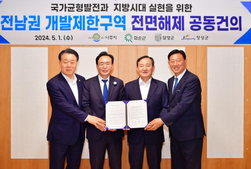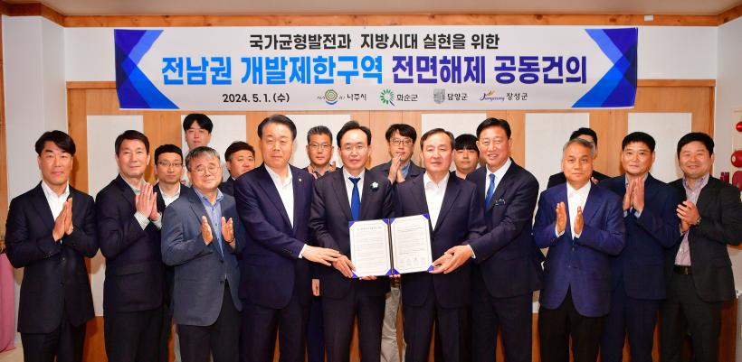 [°ø°£´º½º = ±è¼ö±Ù±âÀÚ] À强±º°ú ³ªÁÖ½Ã, ȼø±º, ´ã¾ç±º ÀÚÄ¡´ÜüÀåÀÌ Áö³ 1ÀÏ °£´ãȸ¸¦ °®°í Àü³²±Ç °³¹ßÁ¦Çѱ¸¿ª Àü¸é ÇØÁ¦¸¦ Á¤ºÎ¿¡ °ÇÀÇÇß´Ù.