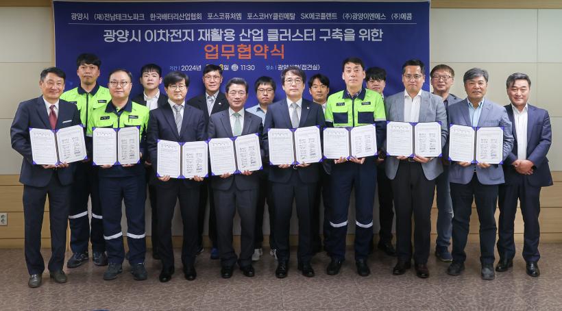 [°ø°£´º½º = ±è¿ëÁø±âÀÚ] ±¤¾ç½Ã´Â Áö³ 3ÀÏ ½Ãû Á¢°ß½Ç¿¡¼ ÀÌÂ÷ÀüÁö ÀçȰ¿ë »ê¾÷ Ŭ·¯½ºÅ͸¦ ±¸ÃàÇϱâ À§ÇÑ ¾÷¹«Çù¾àÀ» ü°áÇß´Ù°í ¹àÇû´Ù.