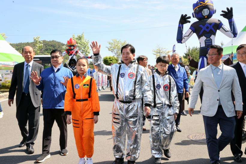 ÀηùÀÇ À§´ëÇÑ ºñ»ó ¡®Áö±¸Àο¡¼ ¿ìÁÖÀÎÀ¸·Î¡¯¶ó´Â ½½·Î°ÇÀ» ³»°Ç À̹ø ÃàÁ¦´Â °ø¿µ¹Î ±º¼ö¿Í Áö¿ª¹Î, ±×¸®°í ¹Ì·¡ ÁÖÀΰøÀÎ ¾î¸°À̰¡ Çϳª µÅ ¿ìÁÖ¸¦ ÇâÇÑ ÈûÂù °ÉÀ½À» ³»µó´Â ÀÔÀå ÆÛÆ÷¸Õ½º·Î °³¸·½ÄÀ» ´ë½ÅÇÏ¸ç ¿ìÁÖÃÌ ÃàÁ¦ÀÇ ¹®À» Ȱ¦ ¿¾ú´Ù.