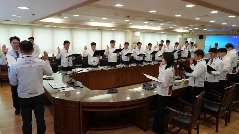 À̳¯ Çà»ç¿¡¼ °»óö ¾ÈÀüº¹Áö°úÀå(¹Ú¶÷ȸ ¾ÈÀü°ü¸®´ÜÀå)Àº °£ºÎµéÀ» ´ëÇ¥ÇØ ¾ÈÀü ¼±¼¸¦ Çϰí, °¢ ½Ç¡¤°úÀåµéÀº °¢ÀÚÀÇ ¼¸íÀ» ´ãÀº ¾ÈÀü¼¾à¼¸¦ ÁغñÀ§¿øÀå¿¡°Ô Àü´ÞÇß´Ù.
