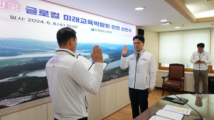 [°ø°£´º½º = ±è¼ö±Ù±âÀÚ] Àü¶ó³²µµ±³À°Ã»(±³À°°¨ ±è´ëÁß)ÀÌ ¿À´Â 29ÀÏ °³¸·ÇÏ´Â ¡®2024 ´ëÇѹα¹ ±Û·ÎÄà ¹Ì·¡±³À°¹Ú¶÷ȸ¡¯ÀÇ ¾ÈÀü ¿î¿µÀ» ´ÙÁüÇÏ´Â ¼±¾ðÀ» Çß´Ù.