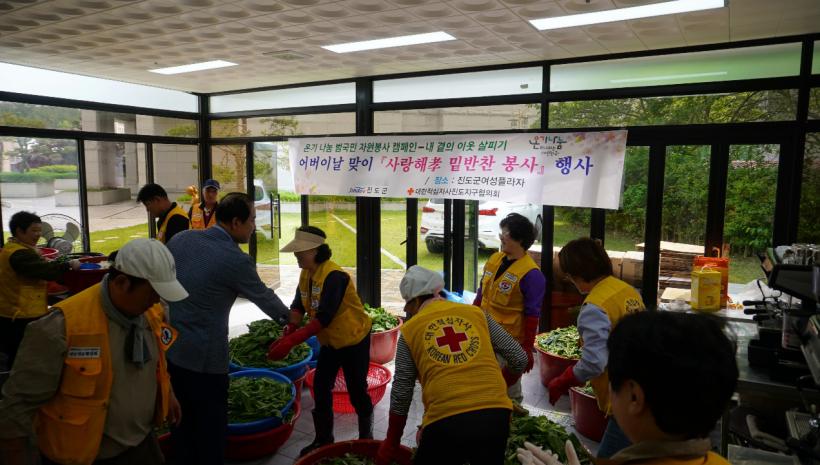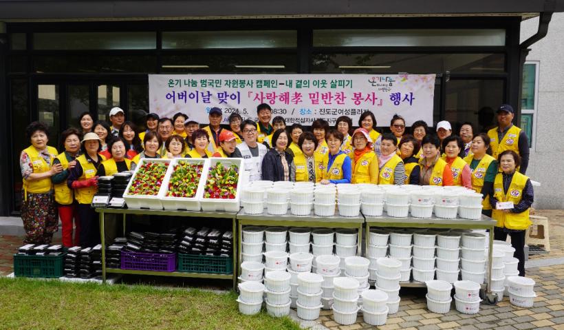 ȸ¿ø 50¿© ¸íÀÌ Áøµµ±º ¿©¼ºÇöóÀÚ¿¡ ¸ð¿© ¾î¹öÀ̳¯À» ±â³äÇØ »ç¶û°ú Á¤¼ºÀ» °¡µæ ´ãÀº ¿¹«±èÄ¡¿Í ¿µ¾ç¼³±â¶±À» Á÷Á¢ ¸¸µé¾ú´Ù.