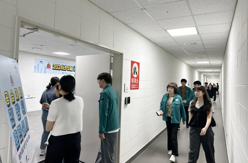 ¡®5¿ù °ø½À´ëºñ ¹Î¹æÀ§ ÈÆ·Ã¡¯Àº û³» ¹æ¼ÛÀ» ÅëÇØ °ø½À°æº¸¸¦ ¹ß·ÉÇØ »óȲÀ» ÀüÆÄÇϰí, Á÷Àå¹Î¹æÀ§´ë¿øÀ» Æ÷ÇÔÇÑ ´ëÇÇ À¯µµ¿ä¿øÀÇ ¾È³»¿¡ µû¶ó Á÷¿øµéÀÌ °ø½À »óȲ¿¡¼ ½Å¼ÓÈ÷ ´ëÇÇÇÒ ¼ö ÀÖµµ·Ï ½Ç½ÃÇÑ ÈÆ·ÃÀÌ´Ù.