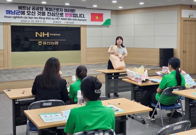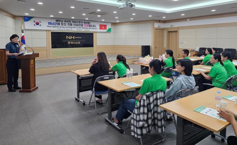 À̿Ͱü·Ã ÇØ³²±º°ú Ȳ»ê³óÇùÀº Áö³ 20ÀÏ °áÈ¥À̹ÎÀÚÀÇ °¡Á·Ä£Ã´ ÃÊû ¹æ½ÄÀ¸·Î ÀÔ±¹ÇÑ º£Æ®³² °èÀý±Ù·ÎÀÚ 22¸íÀÇ ÀÔ±¹ ÇàÁ¤ÀýÂ÷¸¦ ¸¶Ä¡°í, ȯ¿µ½Ä°ú ÇÔ²² ±Ù·ÎÀÚ ±³À°À» °¡Á³´Ù.