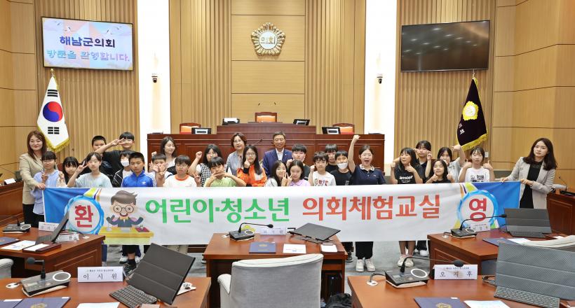 À̹ø Á¦7ȸ ÇØ³²±ºÀÇȸ ¾î¸°ÀÌ¡¤Ã»¼Ò³â ÀÇȸüÇè±³½ÇÀº ÇØ³²¼ÃʵîÇб³ 5Çгâ Çлý 24¸íÀÌ Âü¿©ÇÏ¿© ÀÇÀå, ÀÇ¿ø, Á¶·Ê¾È ¹ßÀÇÀÚ, »ç¹«°úÀå, ÀÇ»çÆÀÀå µî °¢°¢ÀÇ ¿ªÇÒÀ» ¸Ã¾Æ °³È¸ ¼±Æ÷, Áýȸº¸°í, Á÷Á¢ ¸¸µç¡¸Çس²±º °ñ¸ñ±æ ¾ÈÀü¿¡ °üÇÑ Á¶·Ê¾È¡¹À» °¡Áö°í Á¦¾È¼³¸í, Åä·Ð ¹× Ç¥°áÀ» ÇØº¸´Â µî ½ÇÁ¦ º»È¸ÀÇ¿Í µ¿ÀÏÇÏ°Ô ÁøÇà µÇ¾ú´Ù.