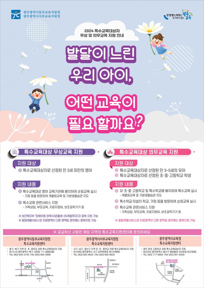 [°ø°£´º½º = ±è¼ö±Ù±âÀÚ] ±¤ÁÖµ¿¡¤¼ºÎ±³À°Áö¿øÃ» Ư¼ö±³À°Áö¿ø¼¾ÅͰ¡ ¿µ¾ÆºÎÅÍ °íµîÇлý±îÁöÀÇ Æ¯¼ö±³À°´ë»óÀÚ ¼±Á¤°ú ¹èÄ¡, ¹«»ó¡¤Àǹ«±³À° Áö¿ø °ü·Ã ¾È³»¸¦ ´ãÀº ¸®Çø´ 1Á¾°ú Æ÷½ºÅÍ 1Á¾À» Á¦ÀÛÇß´Ù°í 27ÀÏ ¹àÇû´Ù.