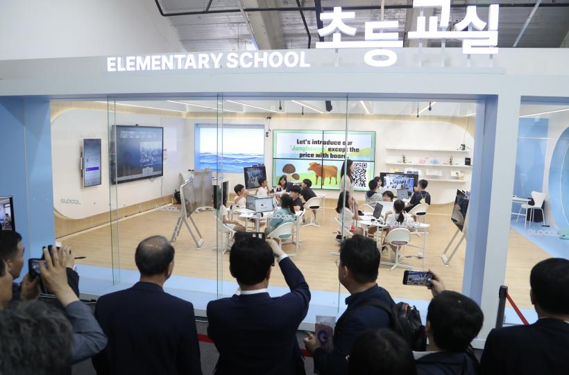 ƯÈ÷ °³¸· ÀüºÎÅÍ ±³À°°è ¾ÈÆÆ¿¡¼ Å« ÈÁ¦¸¦ ¸ð¾Ò´ø ±Û·ÎÄà ¹Ì·¡±³½Ç¿¡ ´ëÇÑ ¾ð·ÐÀÇ °ü½ÉÀÌ ¶ß°Å¿ü´Ù. ¿©¼ö¼¼°è¹Ú¶÷ȸÀå ±¹Á¦°ü Aµ¿¿¡ ±¸ÃàµÈ ±Û·ÎÄà ¹Ì·¡±³½ÇÀº À¯Ä¡¿ø 1½Ç, Ãʵî1½Ç, Áßµî1½Ç, ÇÁ·ÎÁ§Æ®1½Ç, ½º¸¶Æ®¿ÀÇǽº 1½Ç ÃÑ 6°³ ½ÇÀÌ ¸¶·ÃµÆ´Ù. À̳¯ Ãʵî 1½Ç¿¡¼´Â Çлý 14¸íÀÌ Âü¿©ÇÑ °¡¿îµ¥ ½ÇÁ¦ ¼ö¾÷ÀÌ ÁøÇàµÅ, ÃëÀçÁøµéÀÇ À̸ñÀ» ²ø¾ú´Ù.