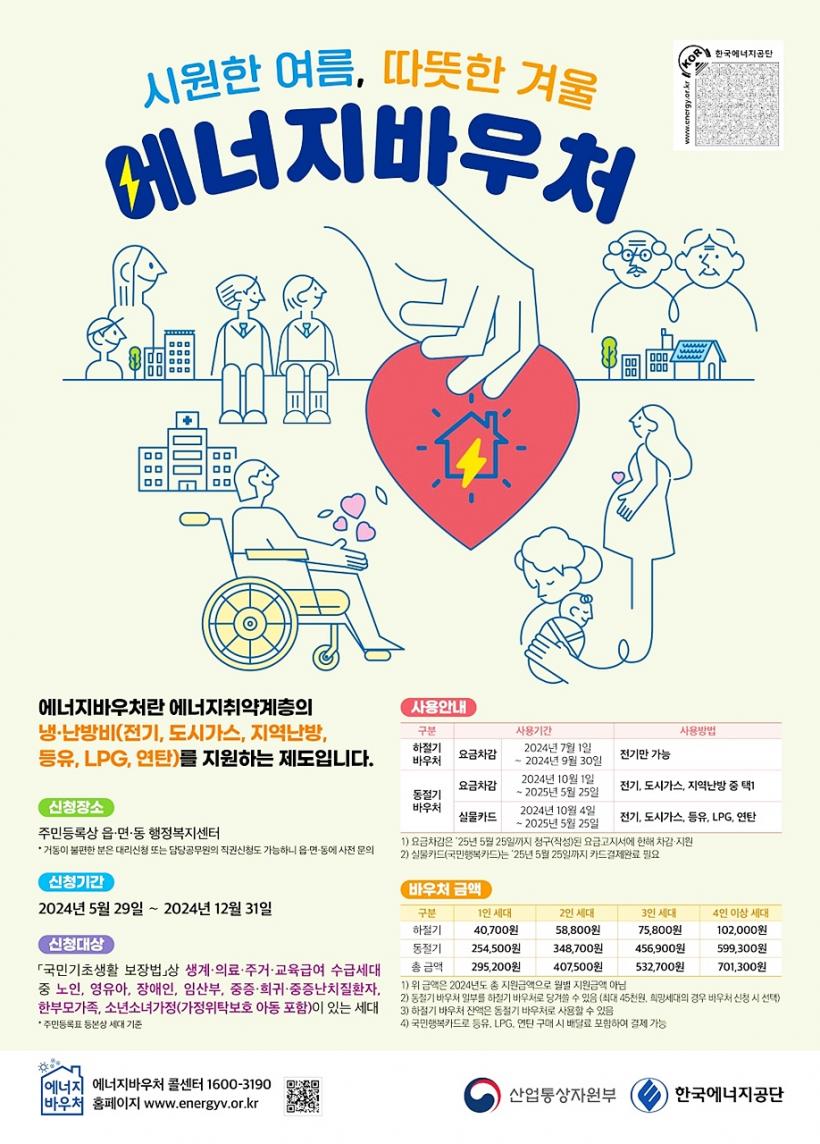 À̹ø 2024³âµµ ¿¡³ÊÁö¹Ù¿ìó Áö¿ø ±Ý¾×Àº 1ÀÎ ¼¼´ë 295,200¿ø, 2ÀÎ ¼¼´ë 407,500¿ø, 3ÀÎ ¼¼´ë 532,700¿ø, 4ÀÎ ÀÌ»ó ¼¼´ë 701,300¿øÀ¸·Î Áö³ÇØ ´ëºñ Æò±Õ Áö¿ø±ÝÀÌ 15,000¿ø°¡·® ÀλóµÆÀ¸¸ç, »ç¿ë±âÇѵµ 2025³â 5¿ù 25ÀÏ·Î 1°³¿ù°¡·® ¿¬À嵯´Ù.