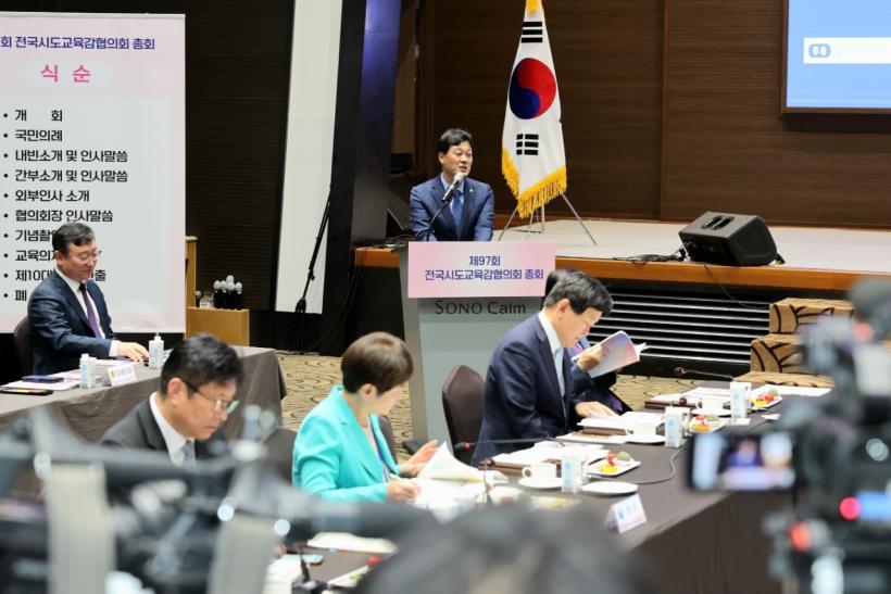 À̳¯ ÃÑȸ´Â Àü±¹½Ãµµ±³À°°¨ÇùÀÇȸ°¡ ÁÖÃÖÇϰí Àü¶ó³²µµ±³À°Ã»ÀÌ ÁÖ°üÇØ ¿·ÈÀ¸¸ç, ±è´ëÁß Àü³²±³À°°¨°ú Á¶Èñ¿¬ ¼¿ï±³À°°¨ µî 17°³ ½Ã¡¤µµ±³À°°¨, °ü°èÀÚ µî 200¿© ¸íÀÌ Âü¼®ÇÑ °¡¿îµ¥ °³È¸ ¹× Ãà»ç, ±³À°ÀÇÁ¦ ÅäÀÇ ¼øÀ¸·Î ÁøÇàµÆ´Ù.