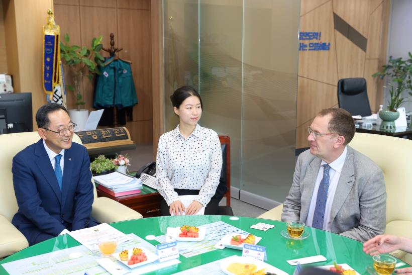 À̳¯ °£´ãȸ¿¡¼´Â ±¹Á¦Çб³ À¯Ä¡¸¦ ºñ·ÔÇØ ¼Ö¶ó½Ãµµ ±â¾÷µµ½Ã¿¡ Á¶¼ºÁßÀÎ RE100 »ê¾÷´ÜÁö°ú È¿ø»ê´Ü ÇØ»ódz·Â¹èÈÄ´ÜÁö µî ½ÅÀç»ý¿¡³ÊÁö¿¡ ´ëÇÑ ÅõÀÚ, Çѹݵµ ¶¥³¡°ú ¼¼°è ¶¥³¡ÀÇ ±³·ù Çù·Â ¹æ¾È µî¿¡ ´ëÇØ Æø³ÐÀº ´ëȸ¦ °®°í ÇÑ-¿µ ÁöÀÚü°£ ÇùÀǹæ¾Èµµ ¸ð»öÇß´Ù.