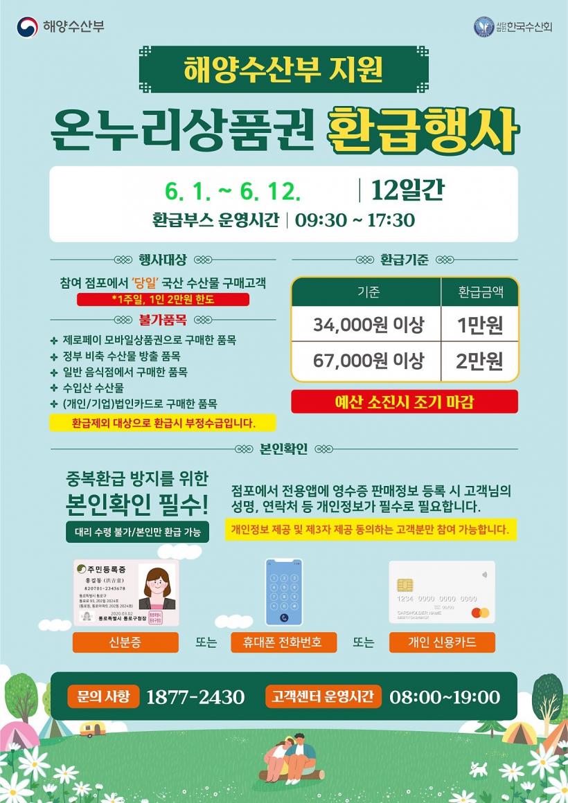 ´Ù¸¸, 6¿ù 1ÀÏ(Åä)~6¿ù 7ÀÏ(±Ý)°ú 6¿ù 8ÀÏ(Åä)~6¿ù 12ÀÏ(¼ö) ±â°£º° 1ȸ¾¿ ȯ±Þ °¡´ÉÇÏ¸ç ¡ãÀϹÝÀ½½ÄÁ¡ ¡ãÁ¦·ÎÆäÀÌ »óǰ±ÇÀ¸·Î ±¸¸ÅÇÑ ¼ö»ê¹° ¡ãÁ¤ºÎ ºñÃà ǰ¸ñ ¡ã¼öÀÔ»ê¼ö»ê¹° ±¸¸Å±Ý¾×Àº ÀÎÁ¤µÇÁö ¾Ê´Â´Ù.