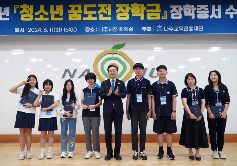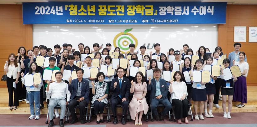 Àü¶ó³²µµ ³ªÁÖ½Ã(½ÃÀå À±º´ÅÂ)´Â ³ªÁÖ±³À°ÁøÈïÀç´Ü¿¡¼ ¡®Ã»¼Ò³â ²Þ µµÀü ÀåÇбݡ¯À» °ü³» Áß¡¤°í±³»ý 40¸í¿¡°Ô Áö±ÞÇß´Ù°í 12ÀÏ ¹àÇû´Ù.