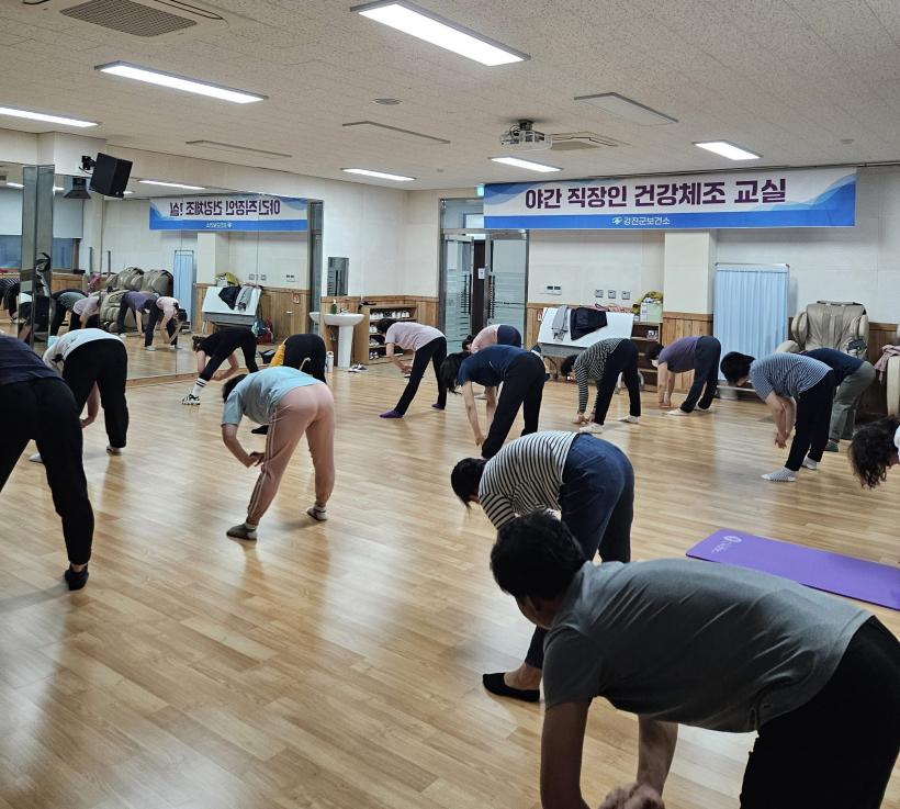 ¾ß°£ Á÷ÀåÀΠüÁ¶±³½ÇÀº Á÷ÀåÀÎÀÇ ½Ã°£¿¡ ¸ÂÃç Åð±ÙÈÄÀÎ Àú³á ½Ã°£À» Ȱ¿ëÇØ, Àü¹® üÁ¶ °»ç°¡ ³²³à³ë¼Ò ´©±¸³ª ½±°Ô µû¶ó ÇÒ ¼ö ÀÖ´Â ½ºÆ®·¹Äª, °Ç°Ã¼Á¶, ¶óÀÎ´í½º, ¿ä°¡ µî ½Å³ª°í Áñ°Å¿î ¿îµ¿ µ¿ÀÛÀ¸·Î ±¸¼ºÇÏ¿© ÁøÇàÇØ ¿Ô´Ù.