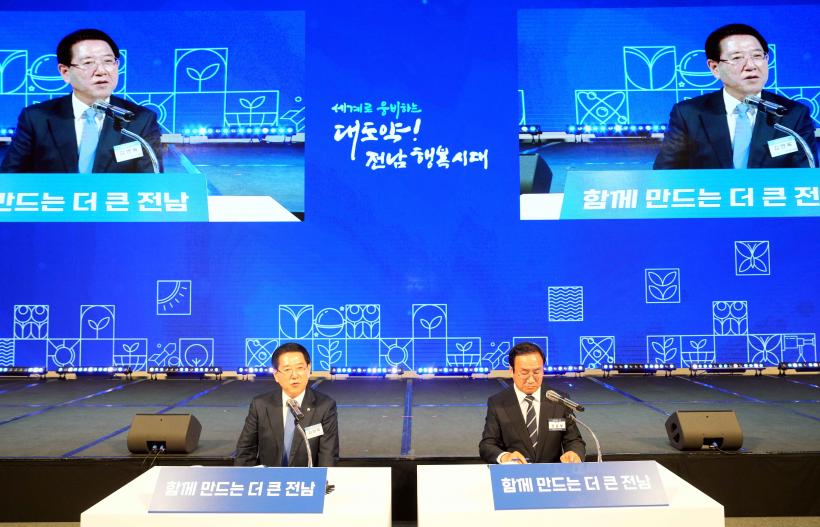 [°ø°£´º½º = ±è¼ö±Ù±âÀÚ] Àü¶ó³²µµ°¡ 14ÀÏ ¼¿ï µå·¡°ï½ÃƼȣÅÚ¿¡¼ ±¤ÁÖÀü³²½Ãµµ¹Îȸ Çâ¿ì 300¿© ¸í°ú ÇÔ²² Àü³²ÀÇ ¹Ì·¡¸¦ ³íÀÇÇÏ´Â ¼ÒÅëÀÇ Àå, ¡®Á¤Ã¥ºñÀü Åõ¾î¡¯¸¦ Ãâ¹ßÇß´Ù.