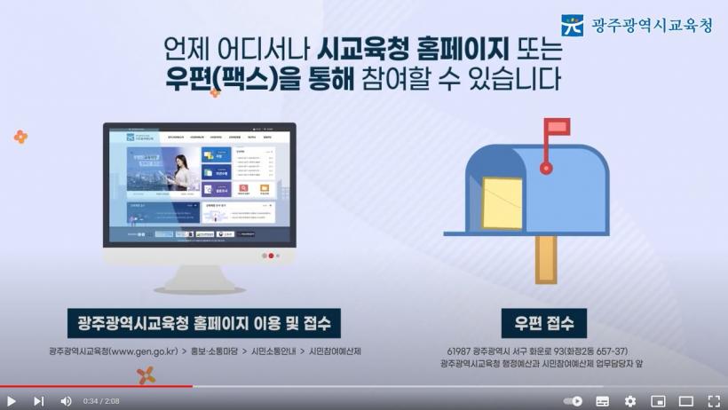 ½Ã±³À°Ã»Àº ÇØ´ç ¿µ»óÀ» À¯Æ©ºê ä³Î(https://www.youtube.com/watch?v=S5yXDeF3_Hs)¿¡ žÀçÇϰí, ½Ã¹ÎÂü¿©¿¹»êÁ¦ ȨÆäÀÌÁö(https://www.gen.go.kr/fopen/main/main.php)¿¡µµ °Ô½ÃÇß´Ù.