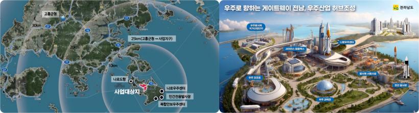 Àü³²µµ´Â ³ª·Î¿ìÁÖ¼¾Å͸¦ Áß½ÉÀ¸·Î Á¤ºÎ·ÎºÎÅÍ 2022³â 12¿ù ¡®¿ìÁֹ߻çü »ê¾÷ ƯÈÁö±¸¡¯·Î ÁöÁ¤µÇ¸é¼, °íÈï¿¡ ¹Î°£¹ß»çÀå ÇÙ½É ±â¹Ý ±¸Ãà, ¿ìÁֹ߻çü ±¹°¡Ã·´Ü»ê¾÷´ÜÁö Á¶¼º µî 8°³ ºÐ¾ß 24°³ ÇٽɰúÁ¦¸¦ ¹ß±¼Çϰí 2031³â±îÁö 1Á¶ 6õ84¾ï ¿øÀ» ÅõÀÔÇÑ´Ù´Â °èȹÀ» ¼ö¸³Çß´Ù.