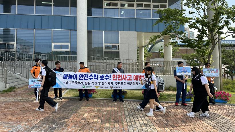 Âü¿©ÀÚµéÀº ±º¹Î°ú ÇлýµéÀ» ´ë»óÀ¸·Î ¿©¸§Ã¶ ¹°³îÀÌ ¾ÈÀüÀÇ½Ä °íÃ븦 À§ÇØ ¾î±ú¶ì, ÇÇÄÏ, Çö¼ö¸·, È«º¸¹°Ç° µîÀ» Ȱ¿ëÇÑ ´Ù¾çÇÑ È«º¸ Ȱµ¿À» ÆîÃÆ´Ù.
