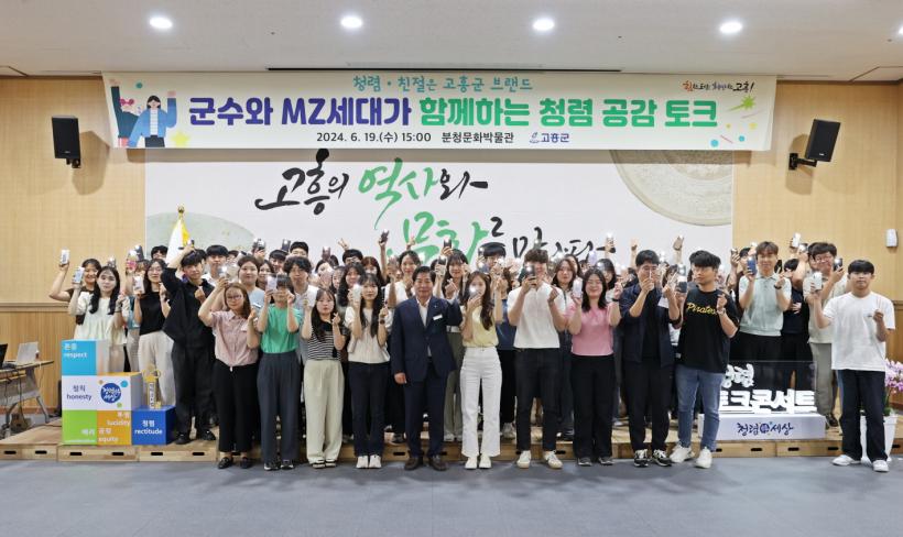 [°ø°£´º½º = ±è¿ëÁø±âÀÚ] °íÈﱺ(±º¼ö °ø¿µ¹Î)Àº Áö³ 19ÀÏ °íÈïºÐû¹®È¹Ú¹°°ü °´ç¿¡¼ MZ¼¼´ë »õ³»±â °øÁ÷ÀÚ 80¿© ¸íÀ» ´ë»óÀ¸·Î ºÎÆÐ ÇØ¼Ò¸¦ ÅëÇÑ Ã»·Åµµ Çâ»ó°ú Á¶Á÷ ¹®È °³¼±¹æ¾È¿¡ ´ëÇØ ³íÀÇÇÏ´Â ¼ÒÅëÀÇ ½Ã°£À» °®°íÀÚ ¡®±º¼ö¿Í ÇÔ²²Çϴ û·Å °ø°¨ ÅäÅ©¡¯ Çà»ç¸¦ °³ÃÖÇß´Ù.