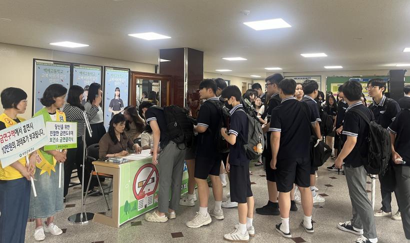 Ä·ÆäÀÎÀº ¹«¾ÈÇкθð¿¬ÇÕȸ, ¹«¾È±³À°Áö¿øÃ», ¹éÁ¦°íµîÇб³ ±³»ç ¹× Çкθð ¿î¿µÀ§¿øµé°ú ÇÔ²² ±Ý¿¬ Çö¼ö¸·°ú ÇÇÄÏÀ» µé°í ±Ý¿¬ ºÐÀ§±â È®»ê È«º¸¸¦ ÁøÇàÇϰí, Çлý 150¸íÀº Æò»ý±Ý¿¬À» ¾à¼ÓÇÏ´Â ±Ý¿¬ ¼¾à¼ ÀÛ¼º¿¡ Âü¿©ÇÏ¿© ±Ý¿¬ ÀÇÁö¸¦ ´ÙÁ³´Ù.