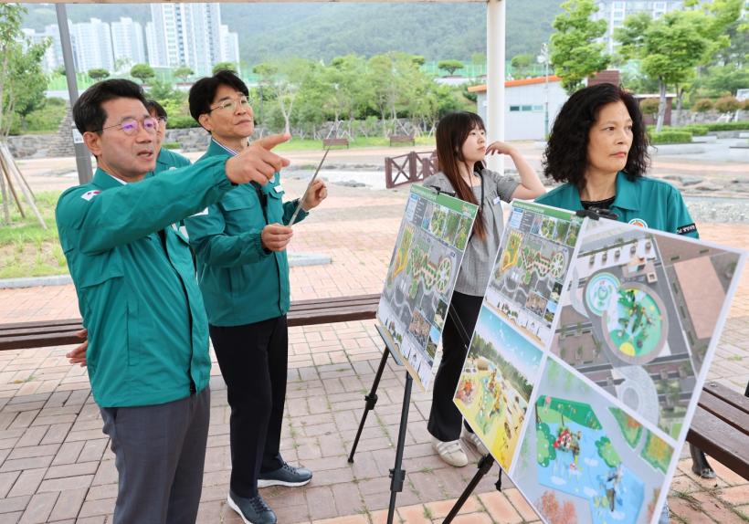ÀÌ¾î ½Ã ÃÖÃÊ µµ½É±Ç ´Ù±â´É Ä£¼ö°ø°£ Á¶¼º°ú ÈÞ°Ô ½°ÅÍ Á¦°øÀ» À§ÇÑ ¸¶µ¿±Ù¸°°ø¿ø ¾î¸°À̹°³îÀÌÅÍ Á¶¼º ÇöÀåÀ» ¹æ¹®ÇØ ½Ã¹Î üÇè°ø°£ ¹× ½Ã¼³ ¹èÄ¡°èȹÀ» ¸é¹ÐÈ÷ Á¡°ËÇß´Ù.