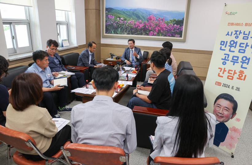 [°ø°£´º½º = ±è¿ëÁø±âÀÚ] Á¤ÀÎÈ ±¤¾ç½ÃÀåÀº Áö³ 6¿ù 26ÀÏ ±¤¾çÀ¾»ç¹«¼Ò¸¦ ã¾Æ ¹Î¿ø ó¸® ´ã´ç °ø¹«¿øÀÇ ³ë°í¸¦ °Ý·ÁÇϱâ À§ÇÑ °£´ãȸ¸¦ °³ÃÖÇß´Ù.