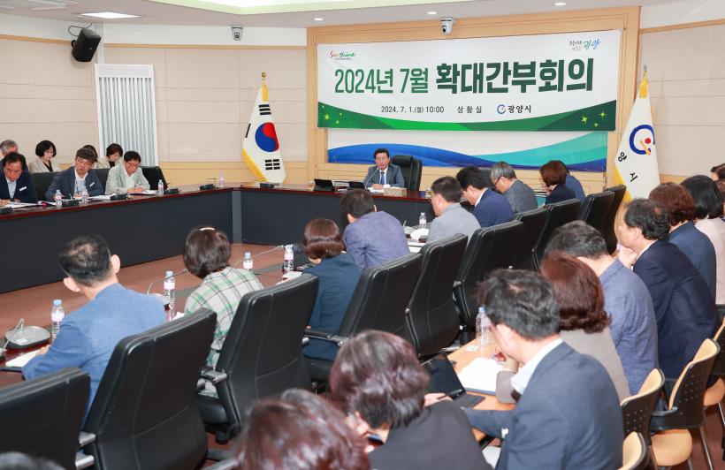 [°ø°£´º½º = ±è¿ëÁø±âÀÚ] ±¤¾ç½Ã´Â Áö³ 1ÀÏ ½Ãû »óȲ½Ç¿¡¼ Á¤ÀÎÈ ½ÃÀå ÁÖÀç·Î ½Ç¡¤´Ü¡¤°úÀå ÀÌ»ó °£ºÎ °ø¹«¿øÀÌ Âü¼®ÇÑ °¡¿îµ¥ 7¿ù È®´ë°£ºÎȸÀǸ¦ ¿°í ½Ã ÁßÁ¡ Çö¾È¾÷¹«¸¦ ³íÀÇÇÏ´Â ½Ã°£À» °¡Á³´Ù.