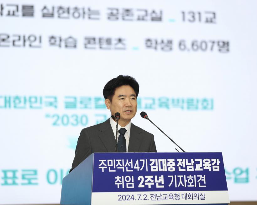 Àü¶ó³²µµ±³À°Ã»ÀÌ 2ÀÏ ¿ÀÀü û»ç 2Ãþ ´ëȸÀǽǿ¡¼ ÁÖ¹ÎÁ÷¼± 4±â ±è´ëÁß ±³À°°¨ ÃëÀÓ 2Áֳ⠱âÀÚȸ°ßÀ» °®°í ÀÌ·± ³»¿ëÀÇ ÇâÈÄ ÁÖ¿ä Á¤Ã¥ ÃßÁø°èȹÀ» ¹ßÇ¥Çß´Ù.