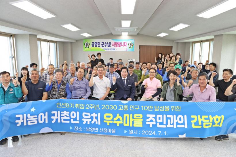 Á÷¿ø ¼ÒÅëÀÇ ³¯ Çà»ç ÈÄ¿¡´Â ¡®2030 °íÈï Àα¸ 10¸¸ ´Þ¼º¡¯À» À§ÇÑ ±Í³ó¾î ±ÍÃÌÀÎ À¯Ä¡ ¿ì¼ö¸¶À» ÁֹΰúÀÇ °£´ãȸ¸¦ À§ÇØ ³²¾ç¸é ¼±Á¤¸¶À»À» ã¾Æ 60¿© ¸íÀÇ Áֹεé°ú ÇÔ²²Çß´Ù.