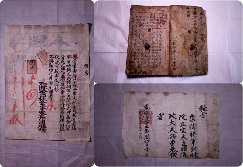 À̿ܿ¡µµ ¹®¹«°ü¿øÀÇ ³ìºÀ(ÒÐÜä) ¼ö·É ÀÚ°ÝÀ» Áõ¸íÇÏ´Â ¡¸³ìÆÐ(ÒÐø«)¡¹, Á¶¼± ¼ö±ºÀÇ ÈÆ·Ã¿¡ »ç¿ëµÈ Àýøº» ÇüÅÂÀÇ¡¸¼öÁ¶È¦±â(â©ðÃûîÑÀ)¡¹, ÀÓÁø¿Ö¶õ±â¿¡ Àü°øÀ» ¼¼¿î °ø·Î·Î 1605³â(¼±Á¶ 38)¿¡ ¼±¹«¿øÁ¾°ø½Å 2µî¿¡ Ã¥ºÀµÈ ¼ö¹®Àå(áúÚ¦íâ) ¼ÛÇÑ¿¡°Ô ¹ß±ÞµÈ ÈÆ·Ãµµ°¨ÀÚ(¸ñȰÀÚ)º»¡¸¼±¹«¿øÁ¾°ø½Å³ì±Ç¡¹µîÀÌ ÃÖÁ¾ ÁöÁ¤µÆ´Ù.