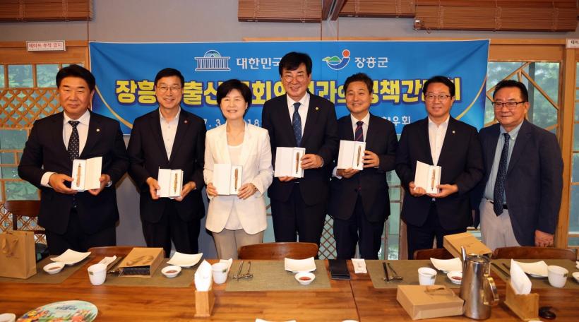 ÀåÈﱺ Ãâ½Å ±¹È¸ÀÇ¿øµéÀº Á¤³²Áø ÀåÈï ¹°ÃàÁ¦, ´ëÇѹα¹ ÅëÇÕÀÇÇÐ ¹Ú¶÷ȸÀÇ ¼º°ø °³ÃÖ¸¦ ±â¿øÇϸç, ÀåÈﱺÀÇ ÁÖ¿ä Çö¾È »ç¾÷ÀÇ Á¶¼ÓÇÑ ÇØ°áµÉ ¼ö ÀÖµµ·Ï ÈûÀ» º¸ÅÂ°Ú´Ù°í ¸»Çß´Ù.